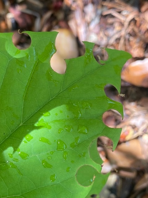 The hollies, sparkle berry, and beauty berry are loaded with berries, awaiting the arrival of the cool season migrating birds. The beauty berry is already beginning to change from green to the brilliant purple berries of fall. Acorns and hickory nuts are forming for other birds and wildlife to feed on over the winter. All we need now is cool weather!