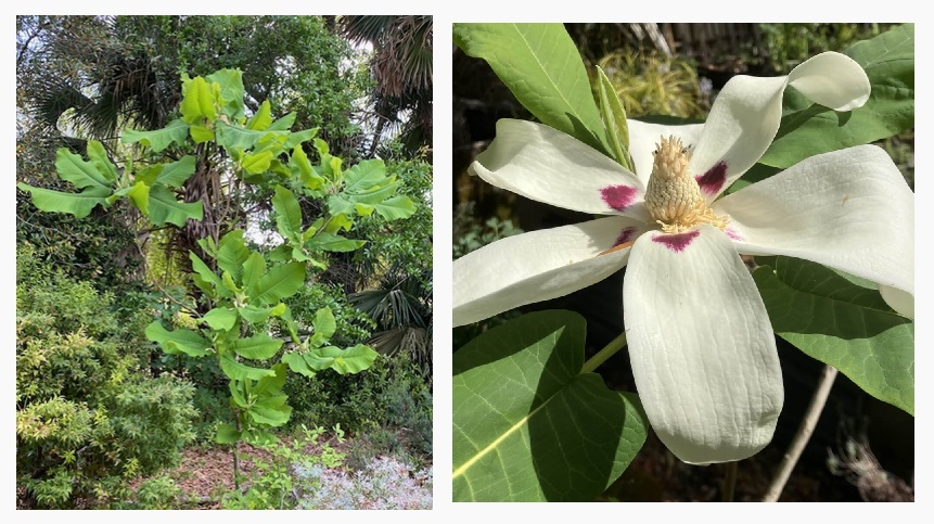 I have two native Ashe Magnolias (Magnolia asheii) in my front yard. When they bloom, I can smell the fragrance in the backyard, or even inside the house. This tree is short compared to most magnolia species, but it really stands out in the garden, with its huge flowers and large leaves.