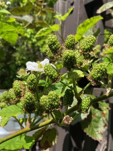 I’m adding to my veggie garden this year, with 5 more raised beds. It’s taking longer than I planned (Imagine that!) but even so, it seems like it will be a good spring to grow veggies. And it already is a “berry” good year! I’m getting lots of strawberries, and the blackberry bush is loaded with fruit! The figs are also growing like crazy, the blueberry species are blooming or already producing berries. The citrus is also full of blossoms, so I am looking forward to a “fruitful” summer.