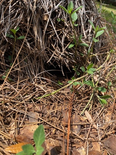 There are box turtles moving around the garden. I have encountered (or uncovered) several different sized turtles this spring. Two rolls of pine straw have been under my persimmon tree for the past two years, because the box turtles burrow into the pine straw for a well-hidden home. Often they are too far in the burrow to see, but sometimes a turtle is visible in the hidey-hole. (I’m hoping that the turtles are eating slugs!)